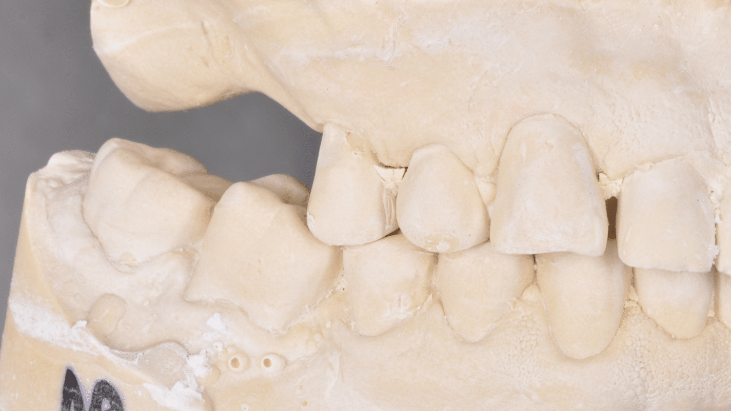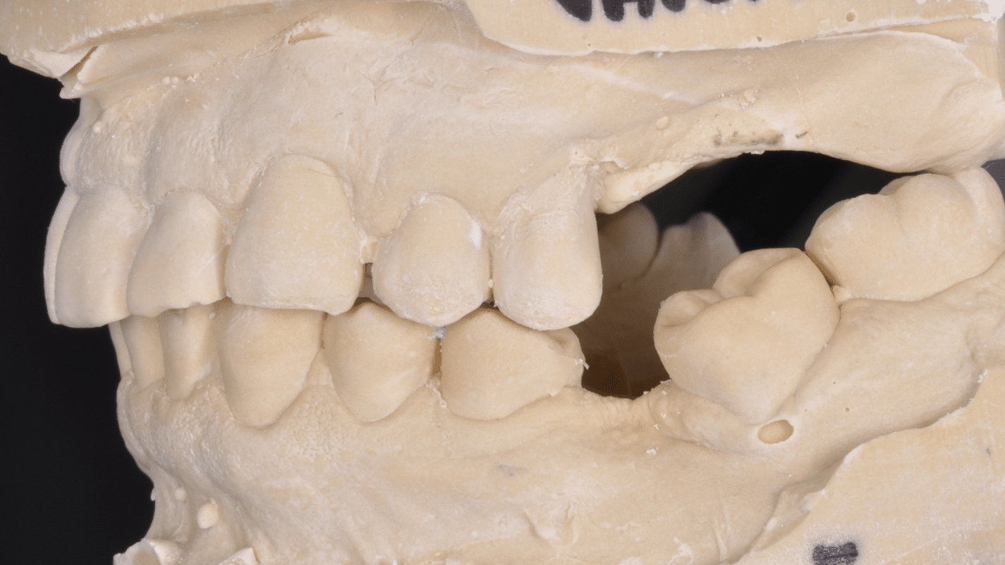 Împreună cu pacientul, am optat pentru inserarea implantelor cu ajutorul ghidului chirurgical pentru a plasa implantul în poziția protetică ideală și pentru a permite realizarea coroanelor insurubate pe implant. A fost efectuată scanarea digitală a arcadelor și a ocluziei pacientului, iar împreună cu tehnicianul radiolog de la DigiRay a fost suprapus fișierul .stl al amprentei digitale peste fișierul .dcm de la CBCT, utilizând software-ul 3Shape.